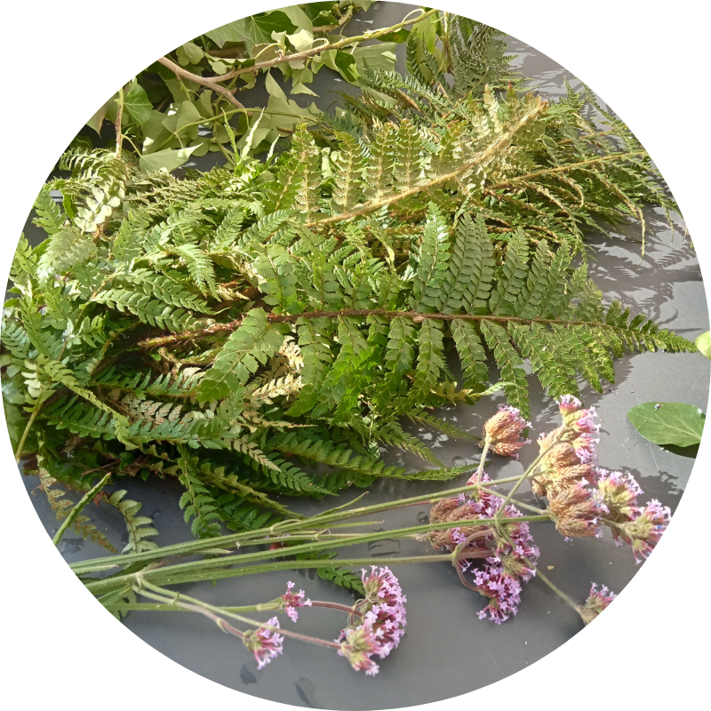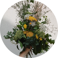 Chaque bouquet est une création unique, inspirée par la nature. Je privilégie au maximum des structures réutilisables ou biodégradables à la place de la mousse florale, qui est un produit polluant et non recyclable.