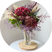 Vivre au rythme des saisons, c’est accepter d’avoir moins de fleurs au cœur de la période hivernale, lorsque la nature est au repos. Même si les hellébores bravent le froid et fleurissent de décembre à mars, Il existe des alternatives, comme les fleurs séchées, qui, intégrées au feuillage, donnent de magnifiques compositions. On peut les associer à d’autres éléments comme des pommes de pin ou des branchages.