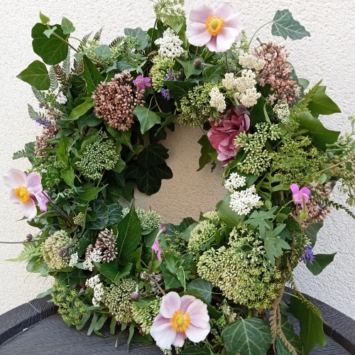 Couronne Deuil entièrement végétale, sans mousse florale.
